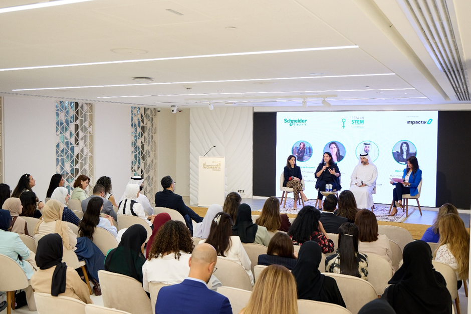 At the Women’s Pavilion, Expo City Dubai, the FEM in STEM: Celebrating Progress, Igniting Futures event convened a high-impact panel, From Insight to Action: Strengthening Pathways for Women in STEM, moderated by Mirel Ghattas, Head of Global Marketing – Gulf at Schneider Electric, with Asli Cakir, Vice President for Human Resources at Schneider Electric GCC, Nadine Halabi de Francesca, Head of Business Development & Operations at the Dubai Business Women Council (DBWC), and Dr. Fadi Aloul, Dean of the College of Engineering at the American University of Sharjah.