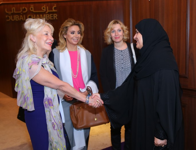 The delegation also included Nicole Ameline, Chairperson of the United Nations Commission on Parity and Gender Balance; Estelle Pouille, Chairperson of the Women Empowerment Initiative of the French Business Group and the spouse of French Ambassador Ludovic Pouille; Fatima Obaid Al Jaber, Board Member of Al Jaber Group; Maysoon Barber, Executive Director of the Fatima bint Hazza' Cultural Foundation; Fatima Al Marzouqi, Vice President of Mubadala; Budoor Saeed Al Raqbani, Founder CEO of Kalimati Speech and Communication Centre; Mary Corrado, Vice Chairman of the Make a Wish Foundation and Founding Chairperson of AMIDEAST in the UAE, and a number of the most prominent business women from the country.