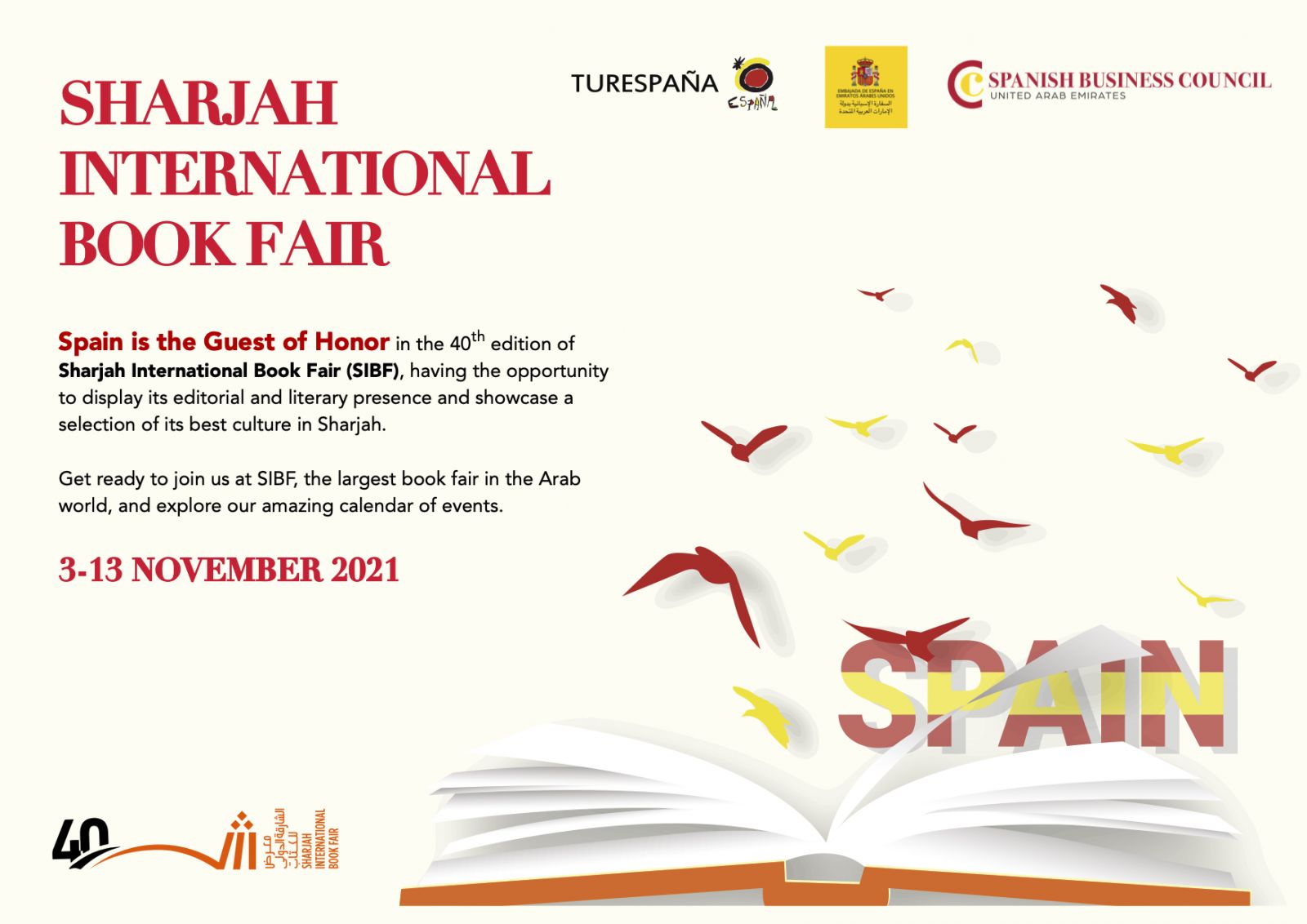 Spain is the Guest of Honor in the 40th edition of Sharjah International Book Fair (SIBF), having the opportunity to display its editorial and literary presence and showcase a selection of its best culture in Sharjah.