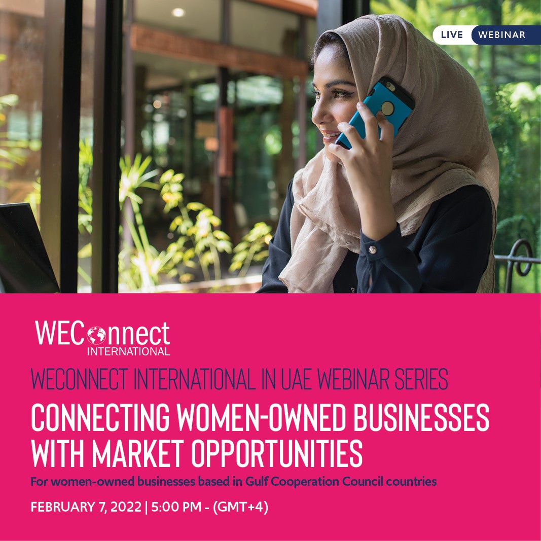 WEConnect International, in partnership with its Member Buyers, is hosting an expert-led Webinar Series from January to May 2022 that will help GCC-based women-owned businesses connect with business opportunities at large companies in GCC and beyond. You will learn how to do business with major buyers that are Members of WEConnect International, and how to strengthen your business profile and pitch to those buyers. There is no charge for the webinars.