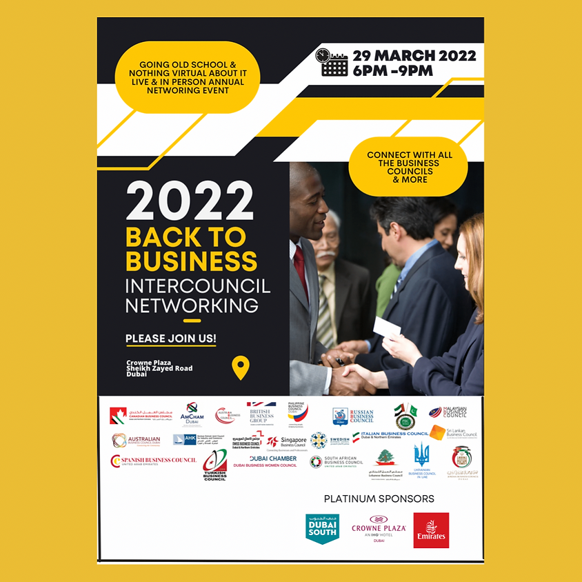 03/29/2022 6:00 pm 03/29/2022 9:00 pm Asia/DubaiBack to Business Intercouncil Networking Event