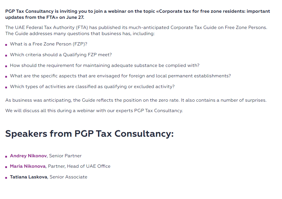 06/27/2024 12:00 pm 06/27/2024 1:00 pm Asia/DubaiBiz Community Event-- Corporate tax for free zone residents: important updates from the FTA