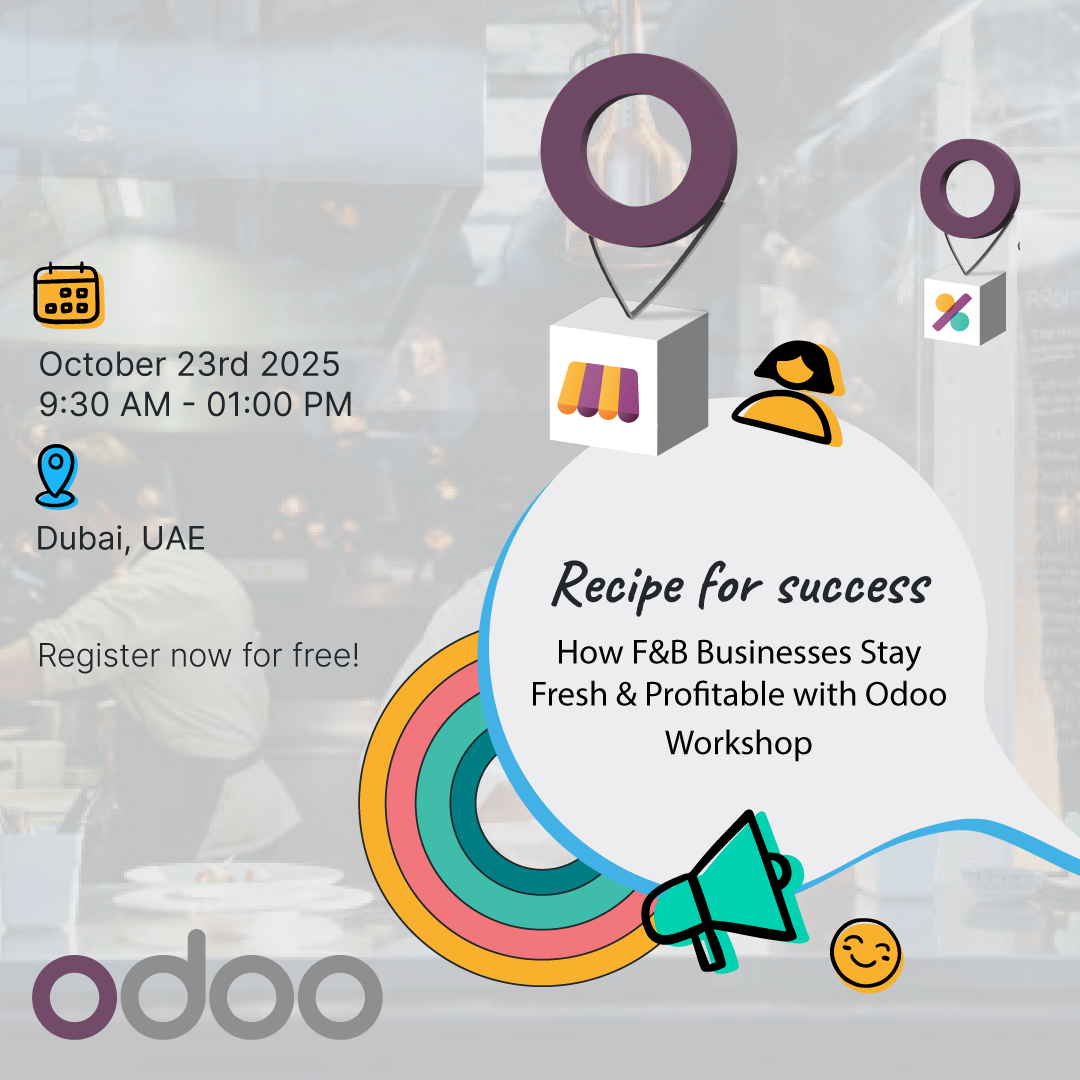10/23/2025 9:30 am 10/23/2025 1:00 pm Asia/DubaiA Biz Community Event: Recipe for Success: How F&B Businesses Stay Fresh & Profitable with Odoo