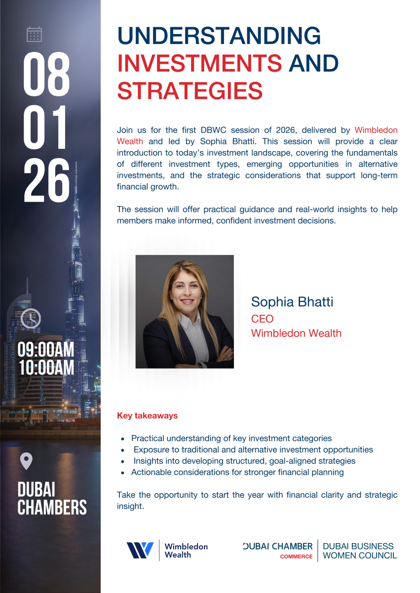 01/08/2026 9:00 am 01/08/2026 10:00 am Asia/DubaiA DBWC Event- Understanding Investments and Strategies with Wimbledon WealthDubai Chamber