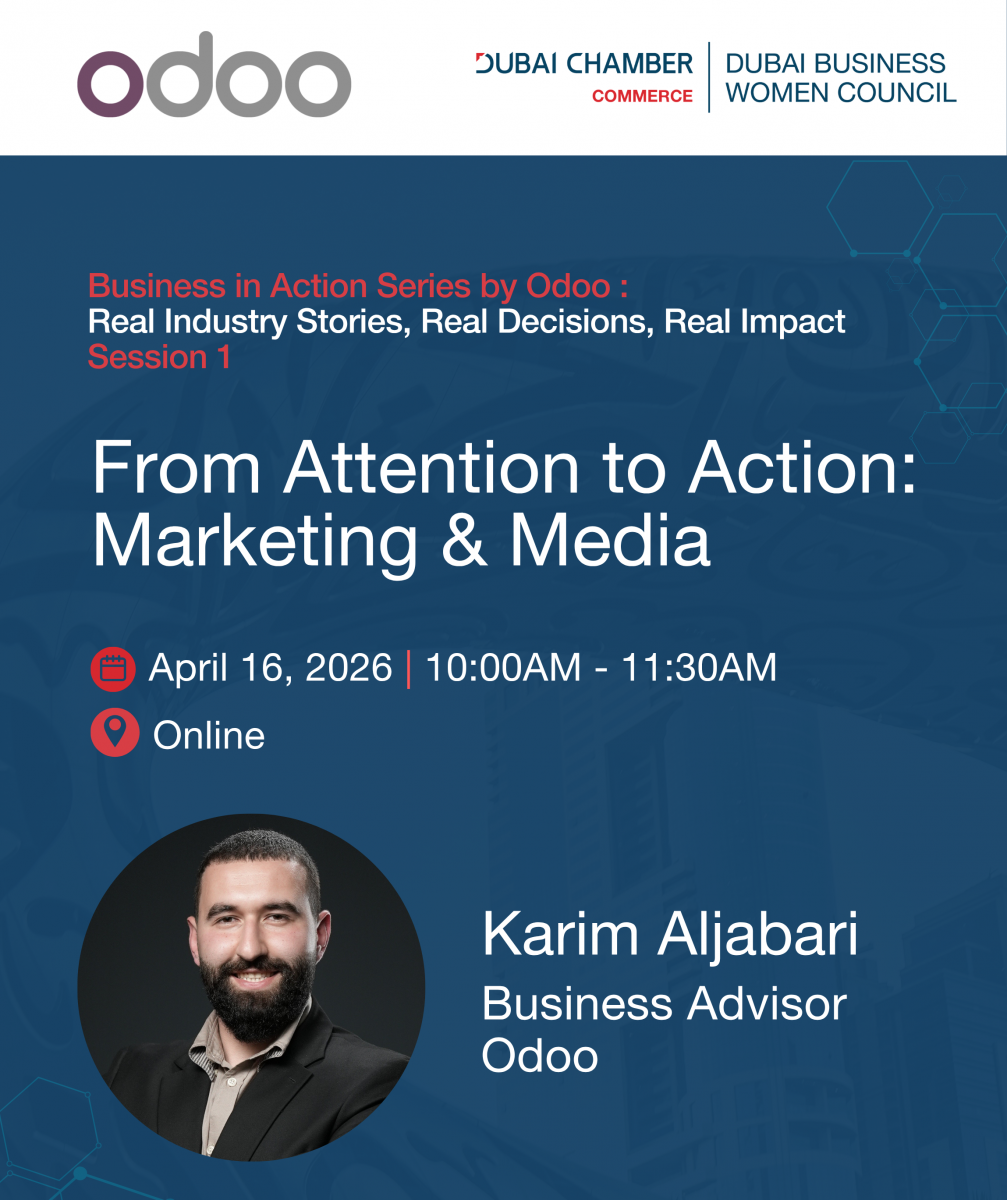 04/16/2026 10:00 am 04/16/2026 11:30 am Asia/DubaiA VIRTUAL DBWC EVENT: BUSINESS IN ACTION SERIES WITH ODOO: REAL INDUSTRY STORIES, REAL DECISIONS, REAL IMPACTDubai Chamber