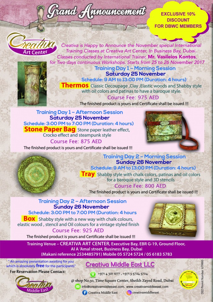 November Special International Training Classes-Creativa Art Center